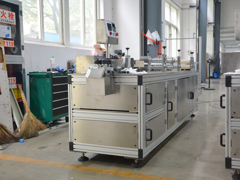 該條形帽機(jī)適用無(wú)紡布厚度9~12gsm,原料幅寬460~470mm。一機(jī)多變,更換模具可以生產(chǎn)各種規(guī)格條形帽,如長(zhǎng)度17”,18”,19”,20”,21”。設(shè)備運(yùn)行穩(wěn)定,最快每分鐘150片,產(chǎn)品合格率達(dá)99%以上。